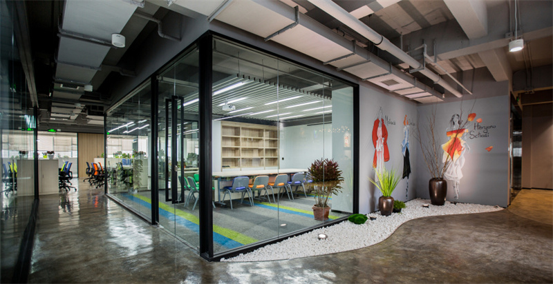 2、其次如果在辦公室的設計規(guī)劃中,不能完全使用原墻的話,可以拆掉一些使部分隔墻再利用。例如一些茶水柜和小的獨立房間可以使部分原有隔墻再利用,一些用于做休閑活動區(qū)的地方還可以借助部分原有隔墻做一些閱讀階梯等設施,省去了新建隔墻的人力物力。另外也可以在部分原墻面后面接上新建隔墻使用,這樣也更能節(jié)省。